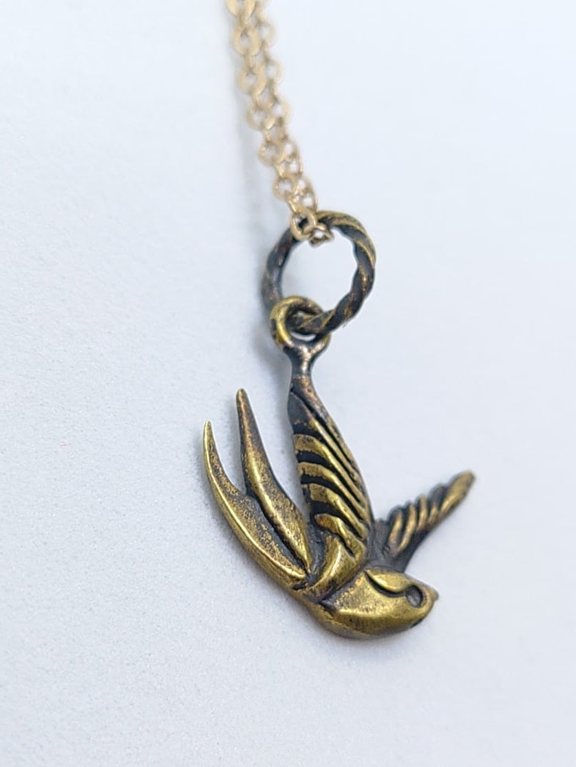 真鍮製のツバメのネックレスです。です。